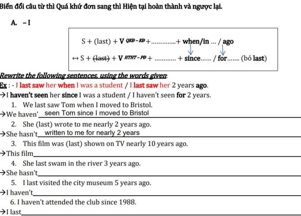 `->` Lần cuối cùng/lần gần nhất ai đó làm gì cách đây bao lâu ...