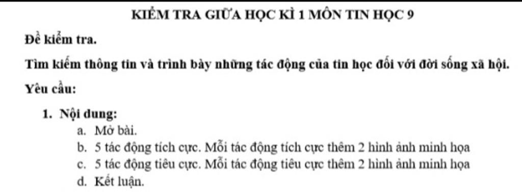 KIỂM TRA GIỮA HỌC KÌ 1 MÔN TIN HỌC 9