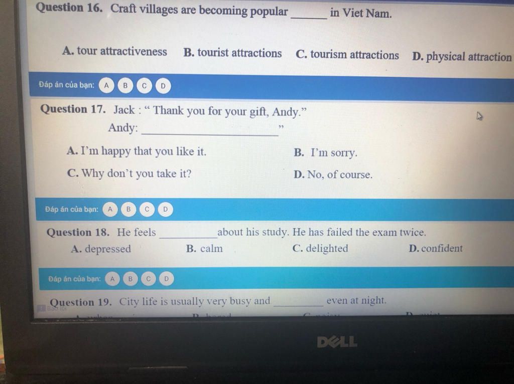 17. A (Jack nói cảm ơn nên Andy thấy vui vì Jack thích món quà)
