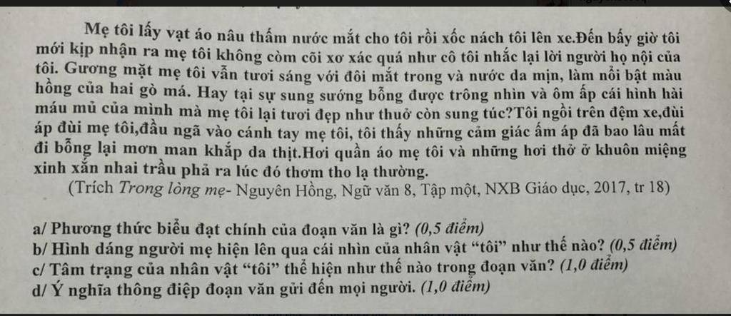 Mẹ tôi lấy vạt áo nâu thấm nước mắt cho tôi rồi xốc nách tôi lên xe.Đến bấy giờ tôi