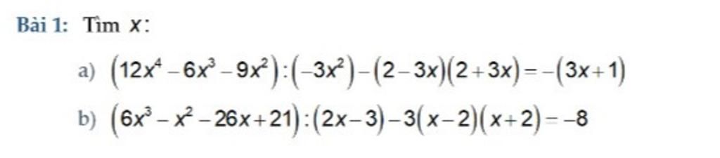 a) $(12x^4 - 6x^3 - 9x^2): (-3x^2) - (2- 3x)(2 + 3x) = -(3x + 1)