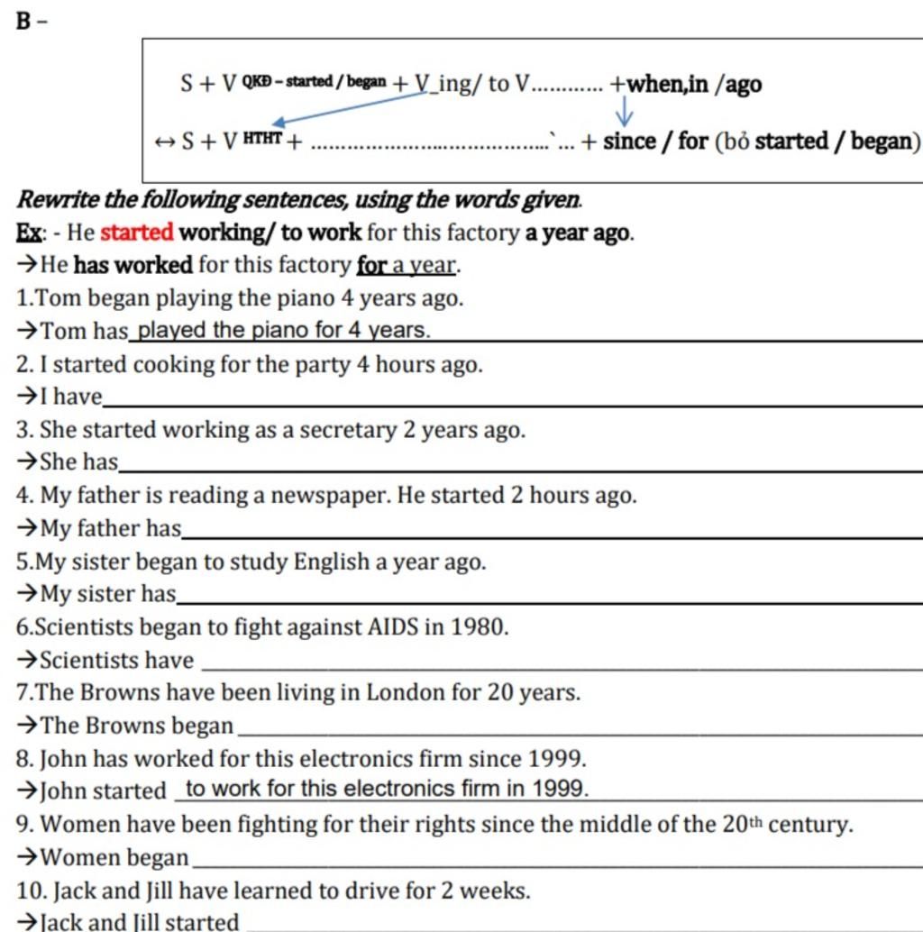 `-` Cấu trúc viết lại câu được sử dụng ở trong bài: