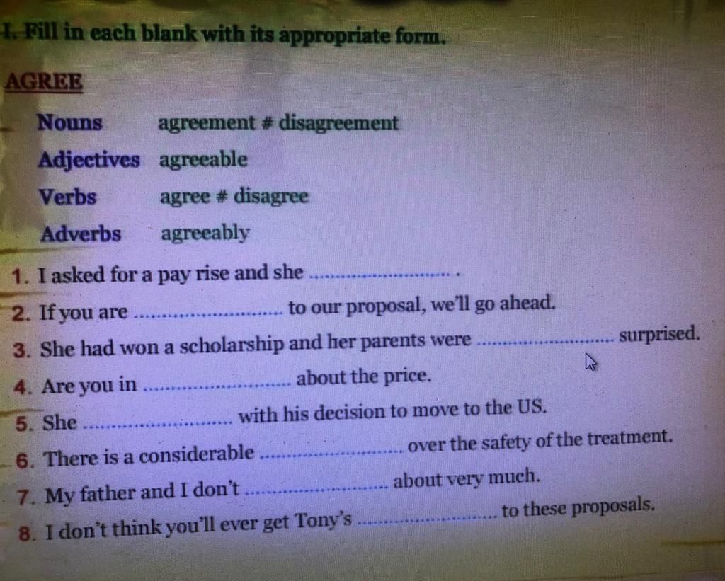 I Fill in each blank with its appropriate form.