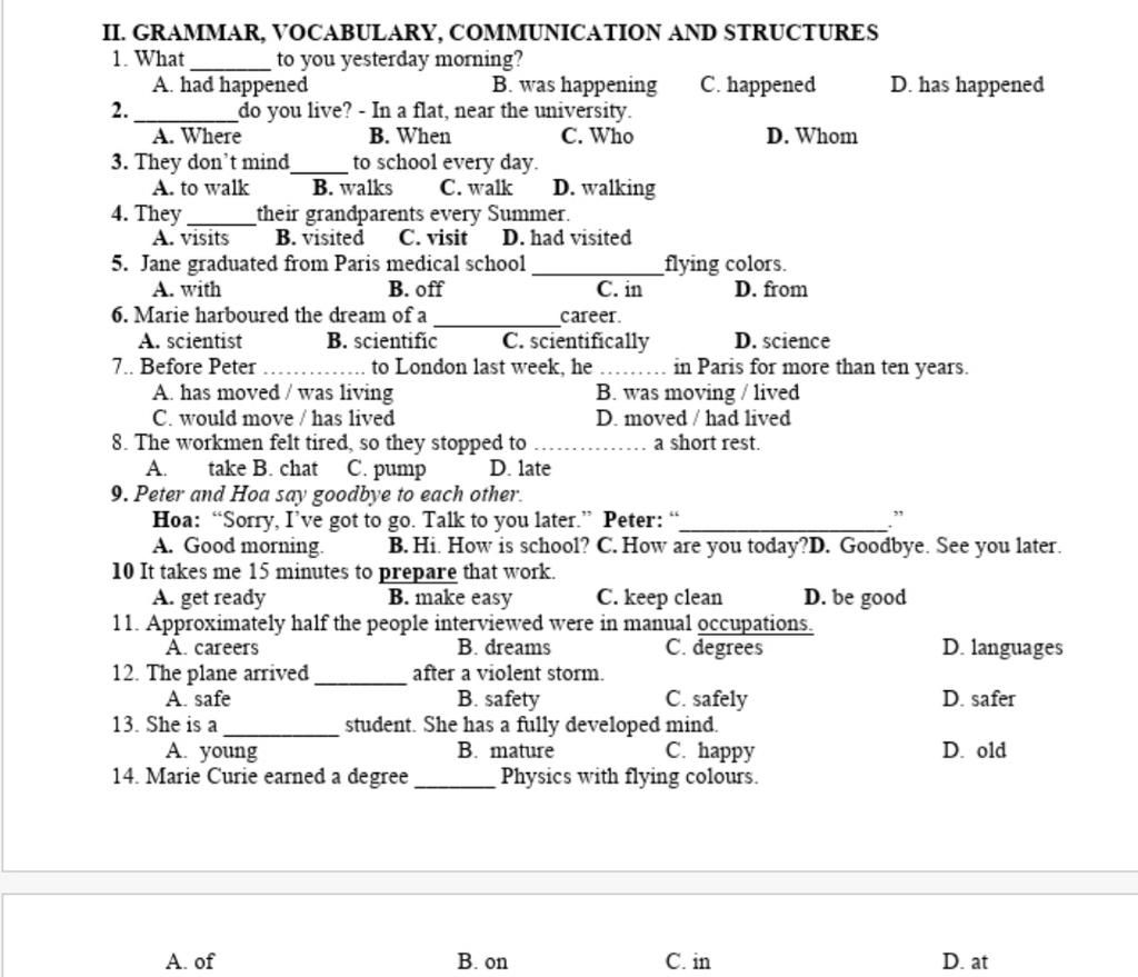 II. GRAMMAR, VOCABULARY, COMMUNICATION AND STRUCTURES