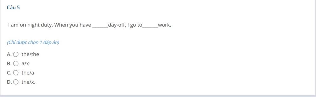 Giải thích: day-off thường đi chung với have a, mang nghĩa một ngày nghỉ.