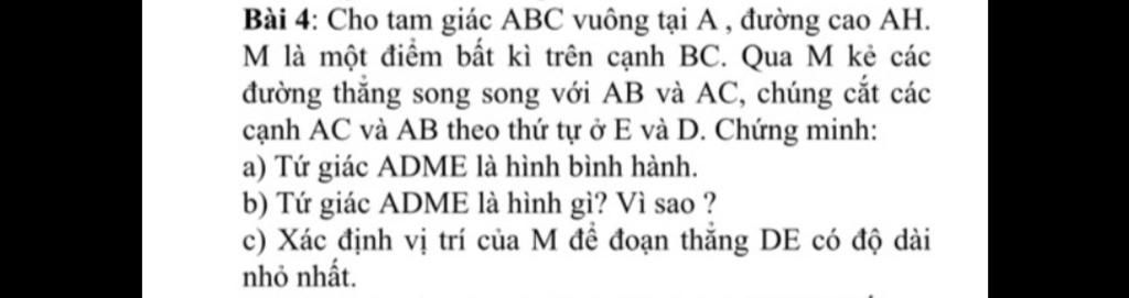 b) Tứ giác ADME là hình gì? Vì sao ?