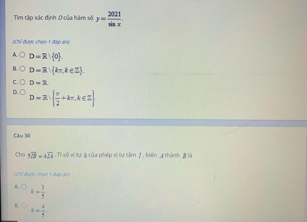 (Chỉ được chọn 1 đáp án)