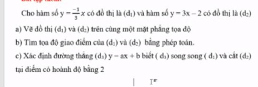 Cho hàm số y -x có đồ thị là (dị) và hàm số y= 3x – 2 có đồ thị là (d;)