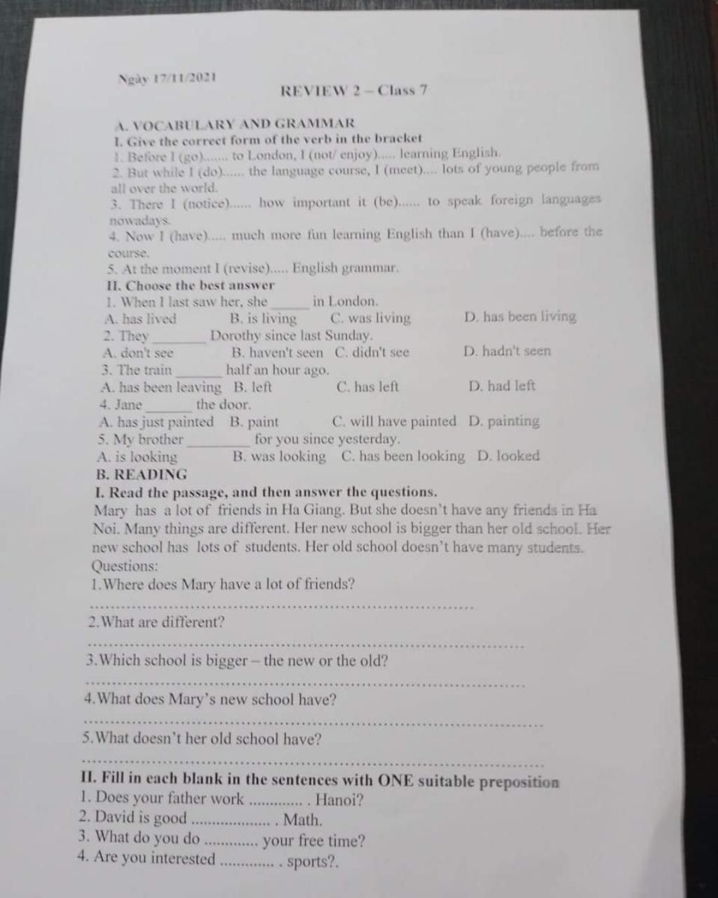 1. Before 1 (go).... to London, I (not/ enjoy).. learning English.