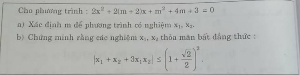 vì kết quả của `|_1+x_2+3x_1x_2|` là hợp với `|m+2|<=\sqrt{2}` nên ta lấy chứng minh đó bạn ạ
