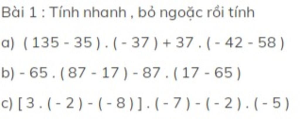 Giải thích các bước giải:a , 135-35(-37)×(-42-58)