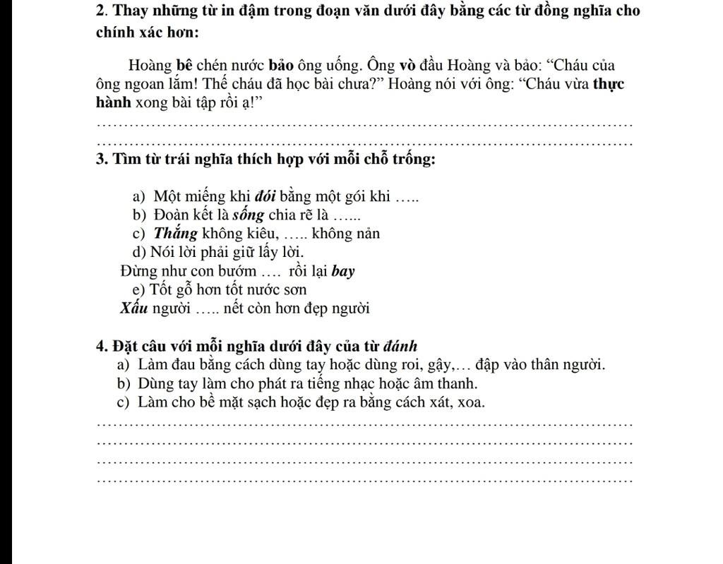 bê, bảo, vò, thực hành--> Cầm, mời, xoa, làm
