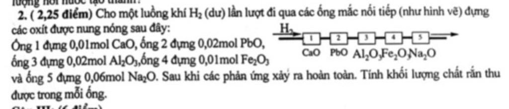 2. (2,25 điểm) Cho một luồng khí Hạ (du) lần lượt đi qua ...