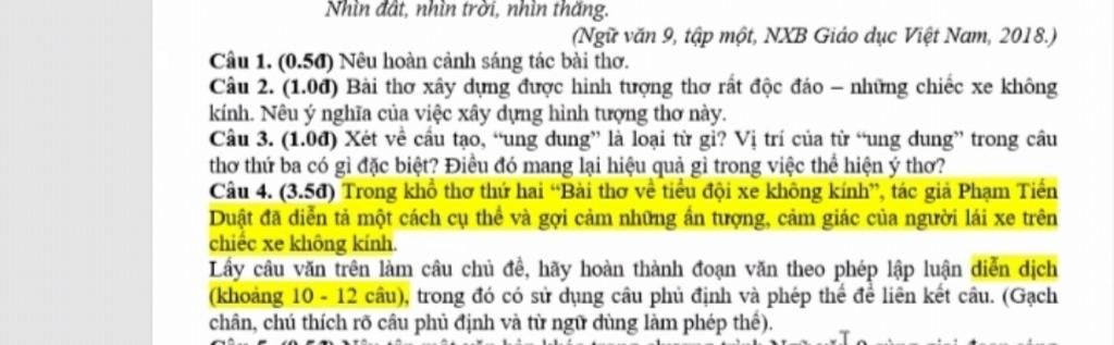 Câu 2. (1.0đ) Bài thơ xây dựng được hình tượng thơ rất độc đáo – những chiếc xe không