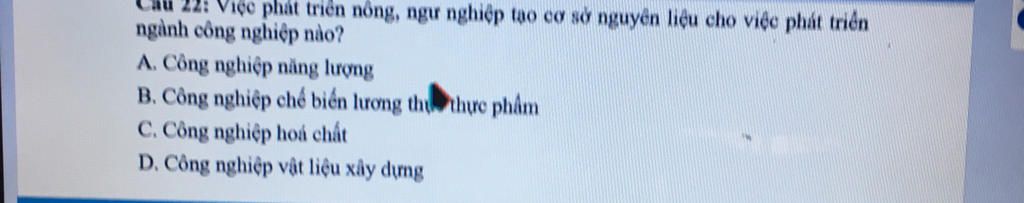 22: Việc phát triên nông, ngu nghiệp tạo cơ sở nguyên liệu cho việc phát triển