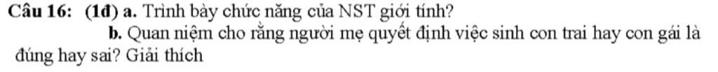 a) Quan niệm sinh con gái, con trai là do người mẹ là sai,
