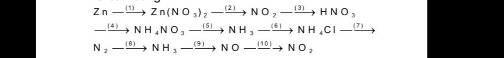 (1) Zn + 4HNO3 → Zn(NO3)2 + 2NO2 + 2H2O