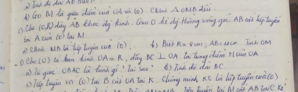 ) Clw (0) to ban kinh 0A= R, dây BC 1 0A tai tumg dưm t1 cua OA