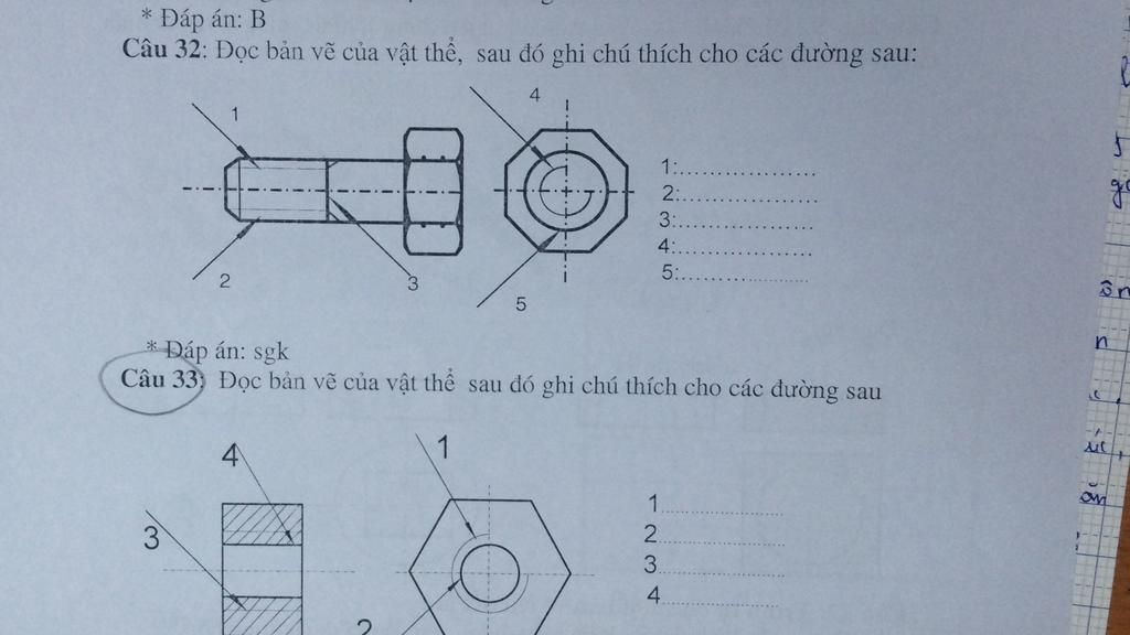 Câu 33) Đoc bản ve của vật thế sau đó ghi chú thích cho các đường sau