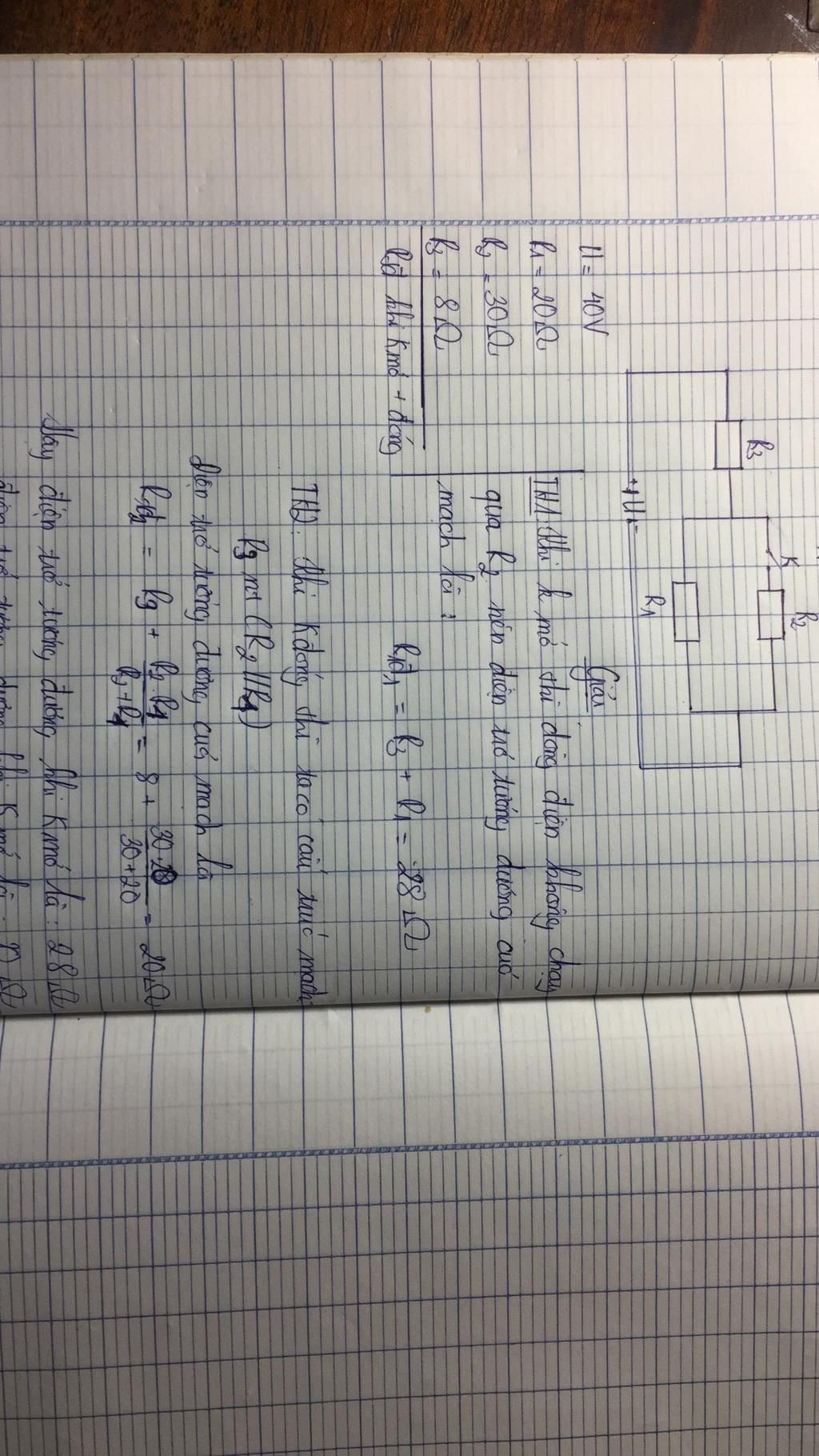 $\\$ `R_(tđ1) = R_1 + R_3 = 20 + 8 = 28(Omega)`