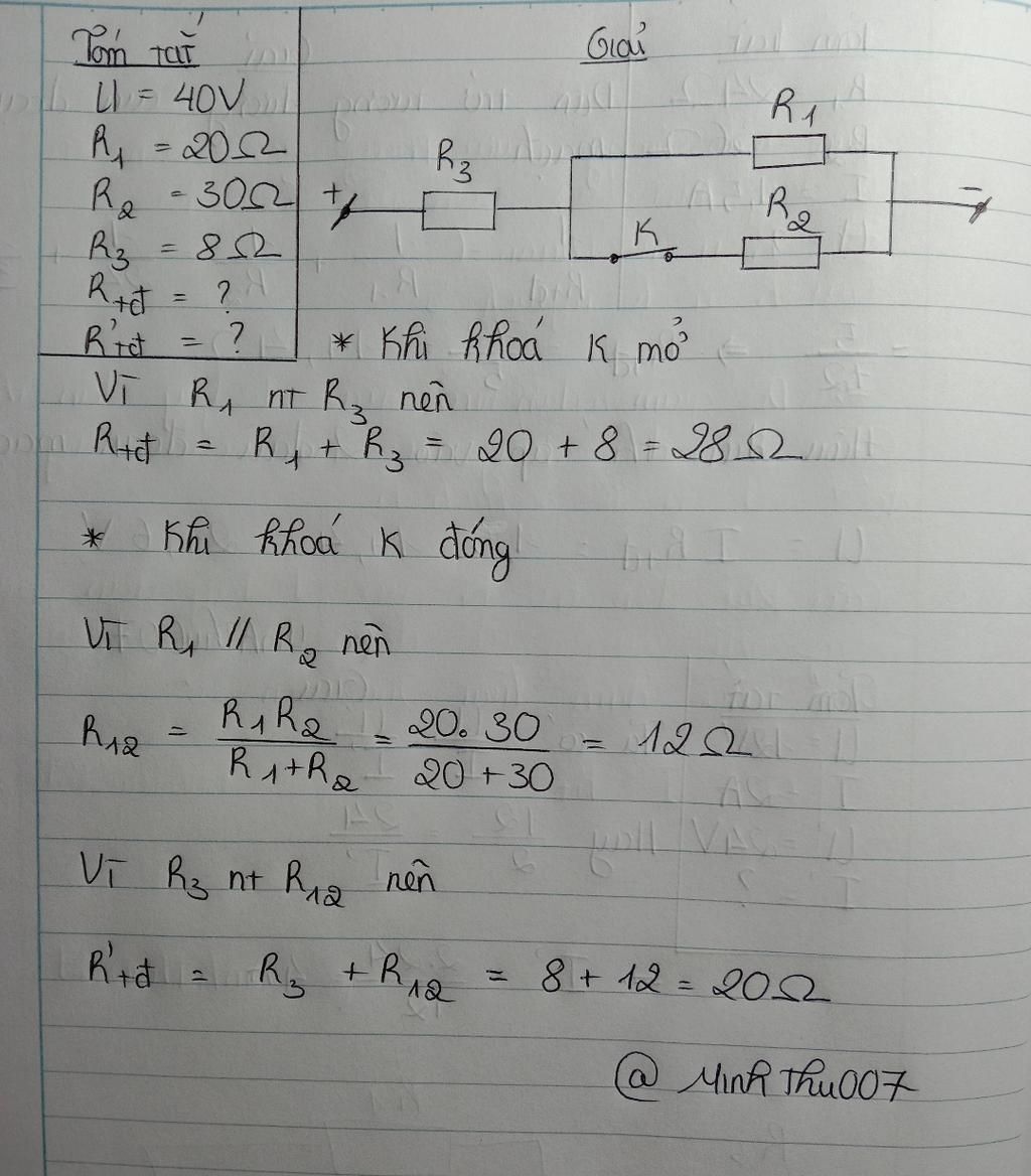 $\\$ `R_(tđ1) = R_1 + R_3 = 20 + 8 = 28(Omega)`