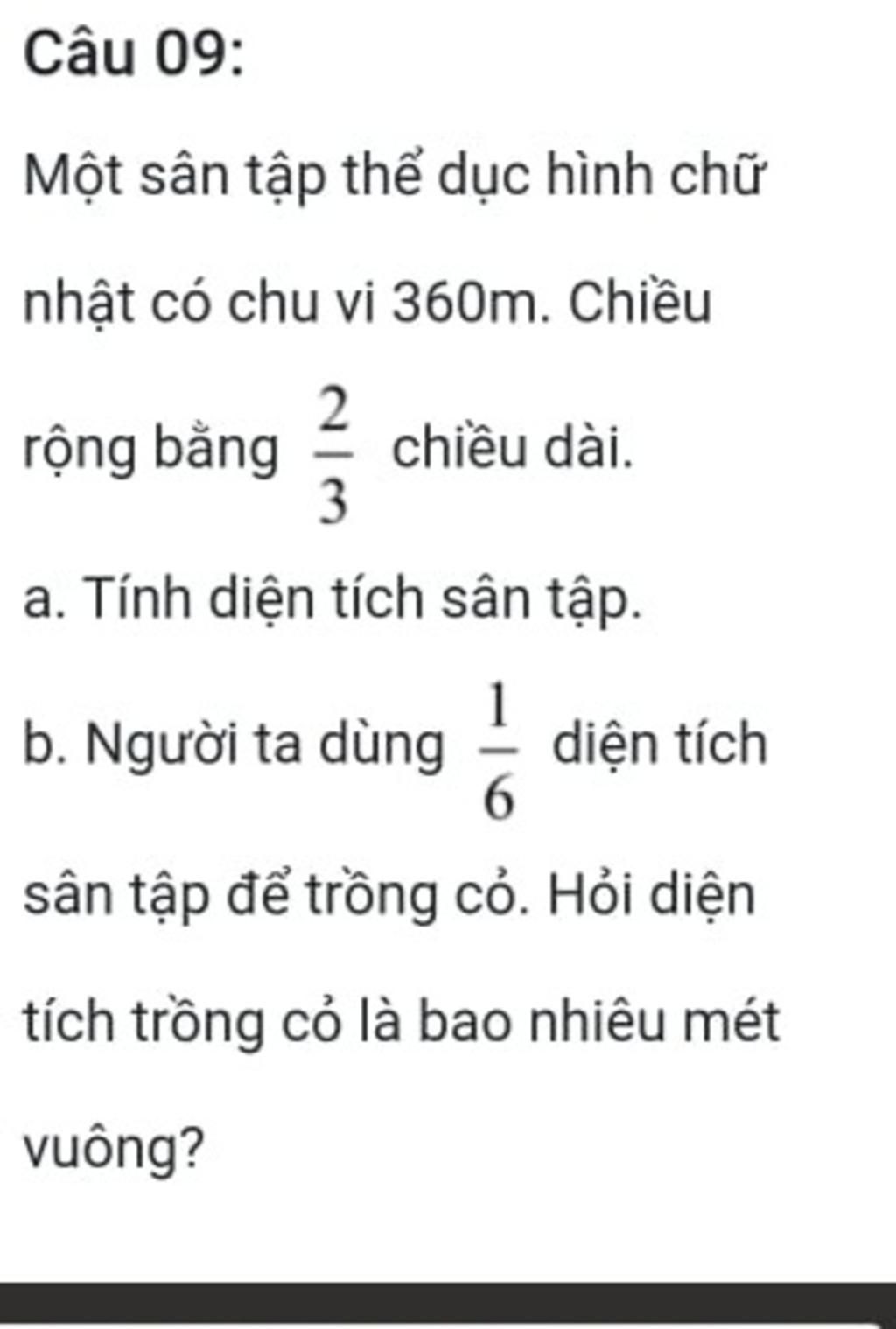 `b)`Diện tích sân dùng để trồng cỏ là :
