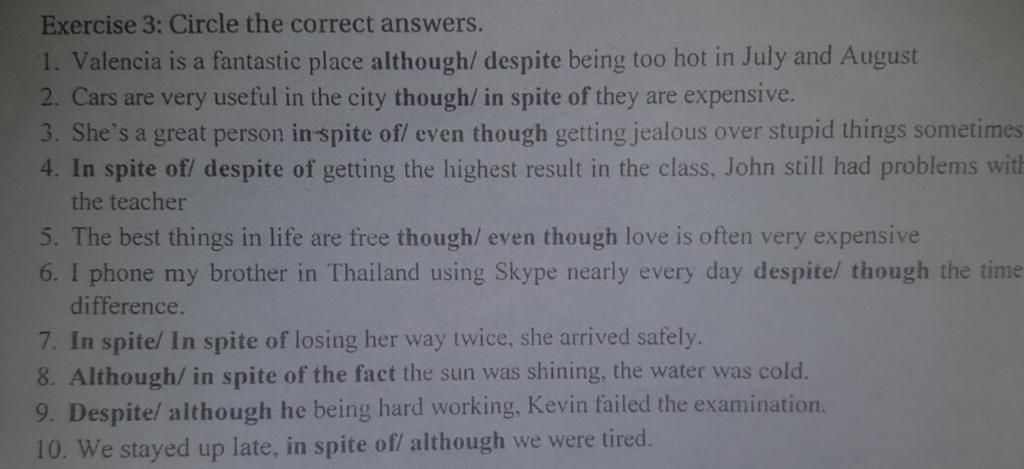 ` or : ` S `+` V `+` Although `/` Though `/` Even though S `+` V