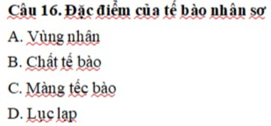 Câu 16: Đặc điểm của tế bào nhân sơ