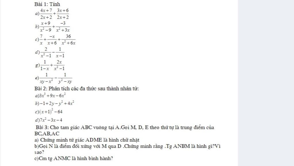 Bài 3: Cho tam giác ABC vuông tại A.Gọi M, D, E theo thứ tự là trung đ ...