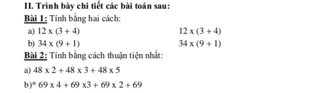 Bài 1: Tính bằng hai cách: