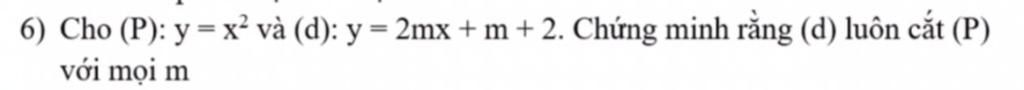 $\Delta'=(-m)^2-(-m-2)=m^2+m+2\\=m^2+2.m.\dfrac{1}{2}+\left(\dfrac{1}{2}\right)^2-\left(\dfrac{1}{2}\right)^2+2=\left(m+\dfrac{1}{2}\right)^2+\dfrac{7}{4}>0\,\,\,\forall m$