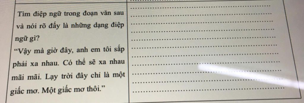 + "một giấc mơ. . ." $\rightarrow$ điệp ngữ vòng (chuyển tiếp): Từ ngữ ở câu trước lặp với từ đều ở câu sau