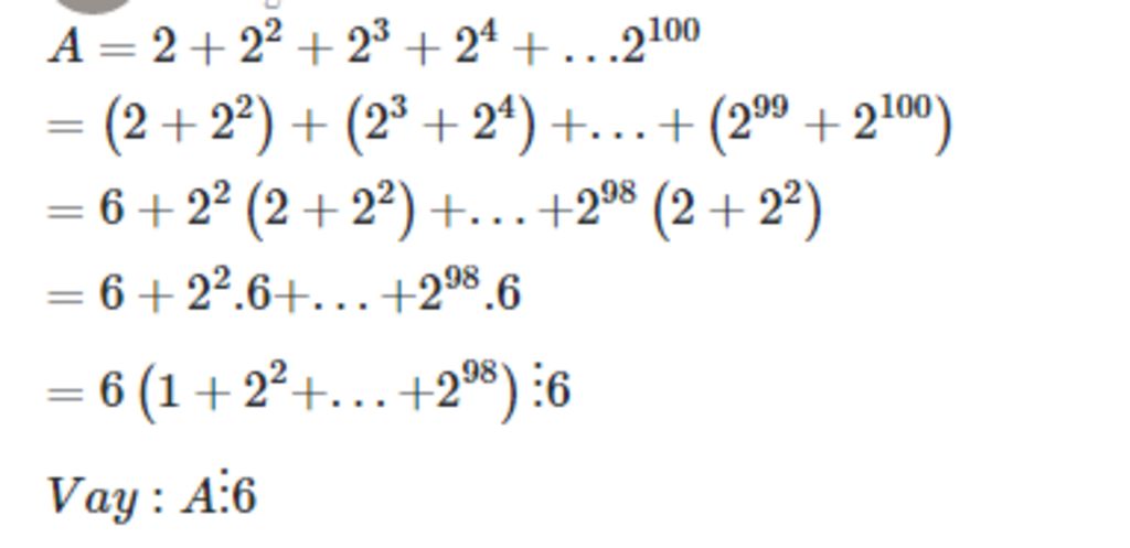 A = `2 + 2^2 + 2^3 + ... + 2^100 vdots 6`