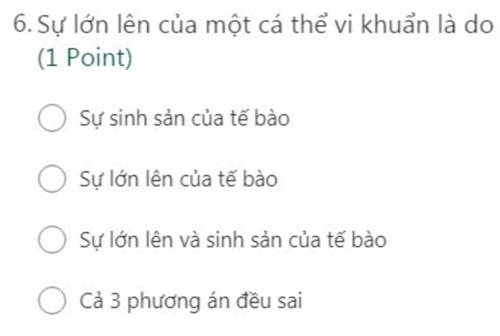`\text{Sự lớn lên là sự tăng diện tích bề mặt và kíck thước của tế bào.}`
