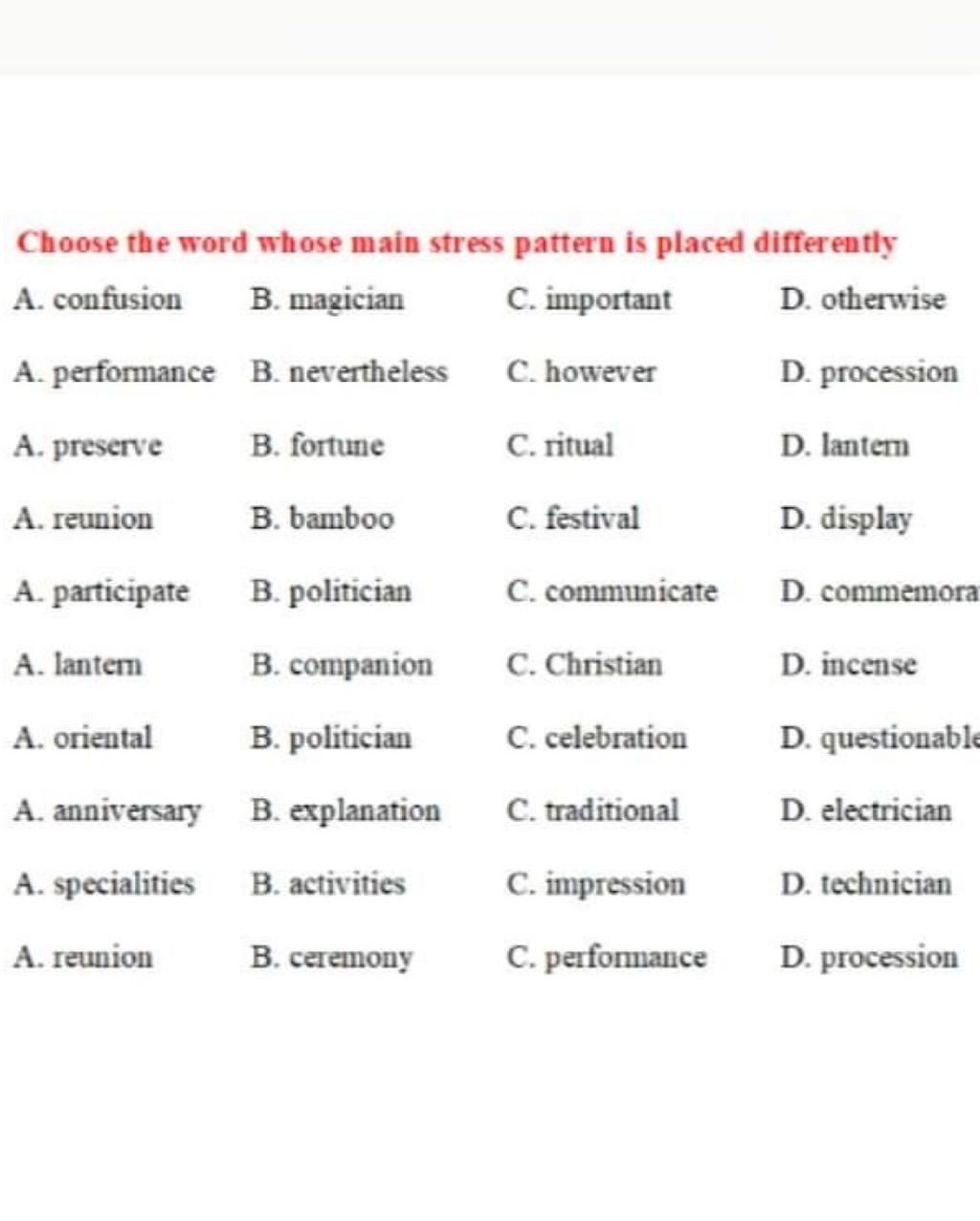 `=>` nhấn âm 2 các câu còn lại nhấn âm 1