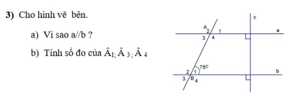 $\text{Ta có : $\widehat{B_1}$ = $\widehat{A_3}$ = $75^o$ (2 góc sole trong) }$
