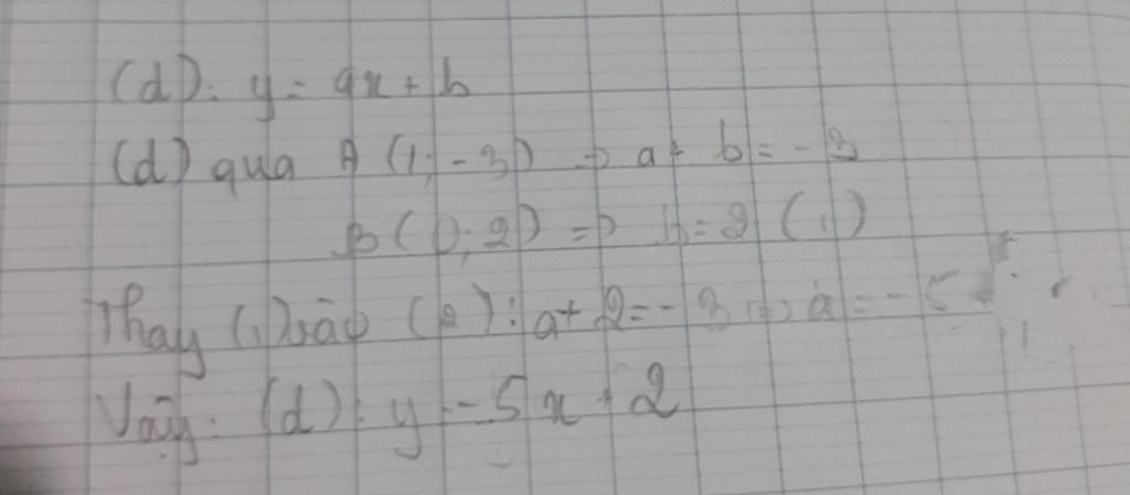 Vậy phương trình đường thẳng \((d)\) cần tìm là: \(y=-5x+2\)