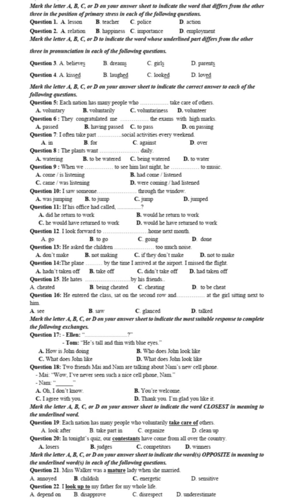 ques 9 : c. came/was listening : đã đến/đã nghe