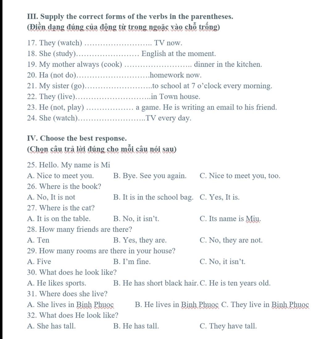 23. doesn't playing ( Anh ấy không chơi game , anh ấy đang viết thư cho bạn của mình )