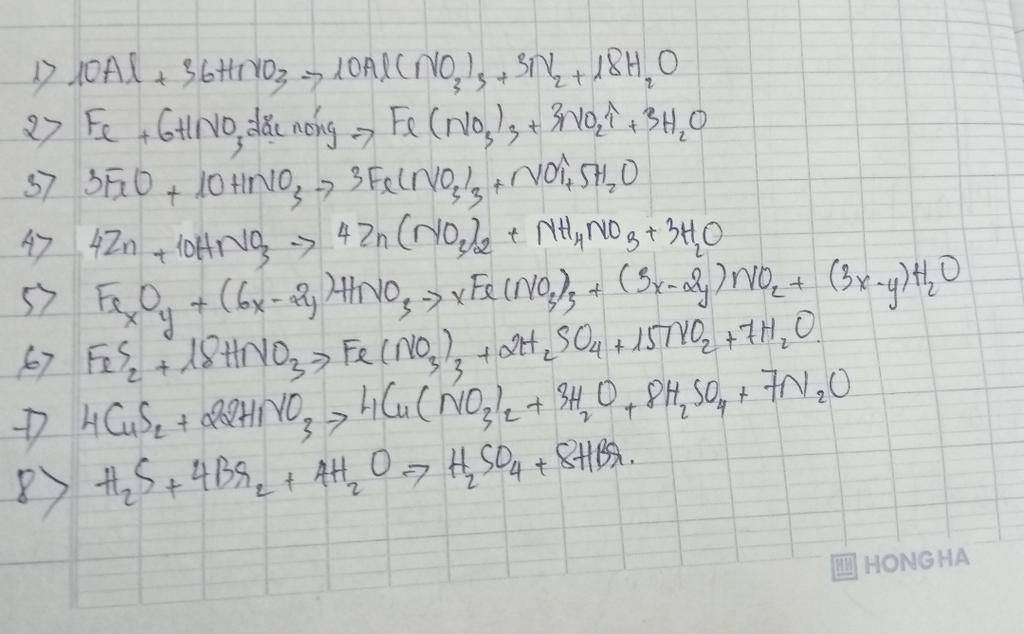 6)FeS_2+18HNO_3\to Fe(NO_3)_3+2H_2SO_4+15NO_2+7H_2O\\