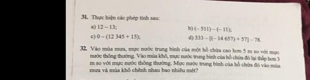 31. Thực hiện các phép tính sau: