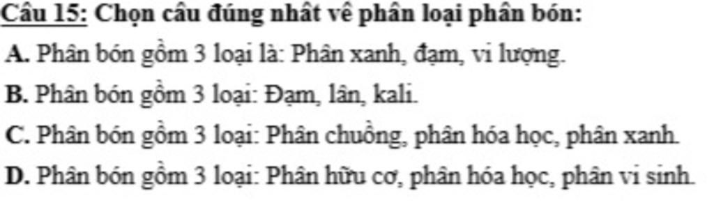 `+` Phân hóa học: Phân gồm các loại đạm, lân, hỗn hợp hoặc phức hợp.