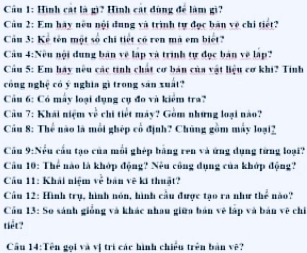 Câu 1: Hình cắt là hình biểu diễn phần vật thể ở sau mặt phẳng cắt