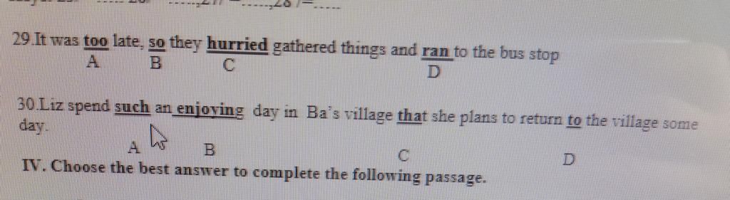 $29.$ $C$ hurried $→$ hurriedly.