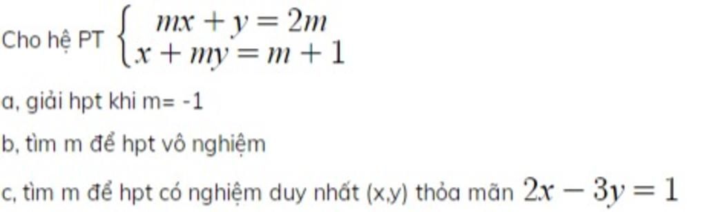 c) Hệ có nghiệm duy nhất khi pt (*) có nghiệm duy nhất