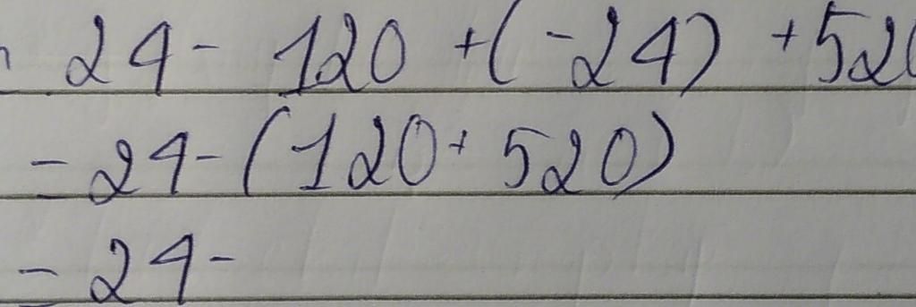 $\text{= 24 + (-24) + [(-120) + 520]}$
