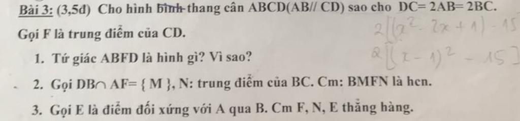 Bài 3: (3,5đ) Cho hình bình-thang cân ABCD(AB// CD) sao cho DC= 2AB= 2BC.