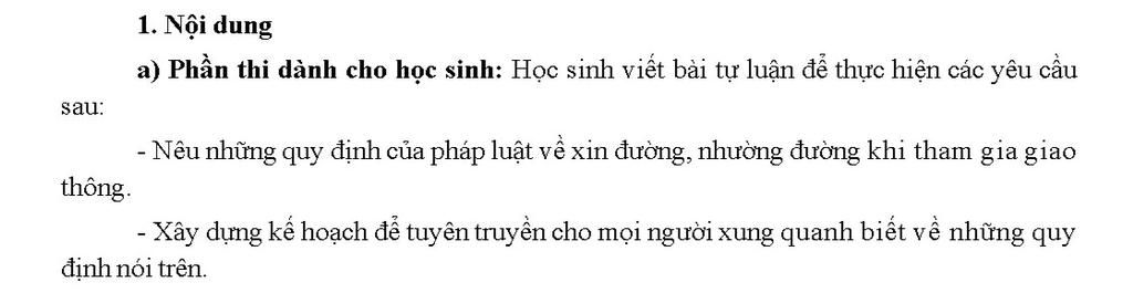 a) Phần thi dành cho học sinh: Học sinh viết bài tự luận để thực hiện các yêu cầu