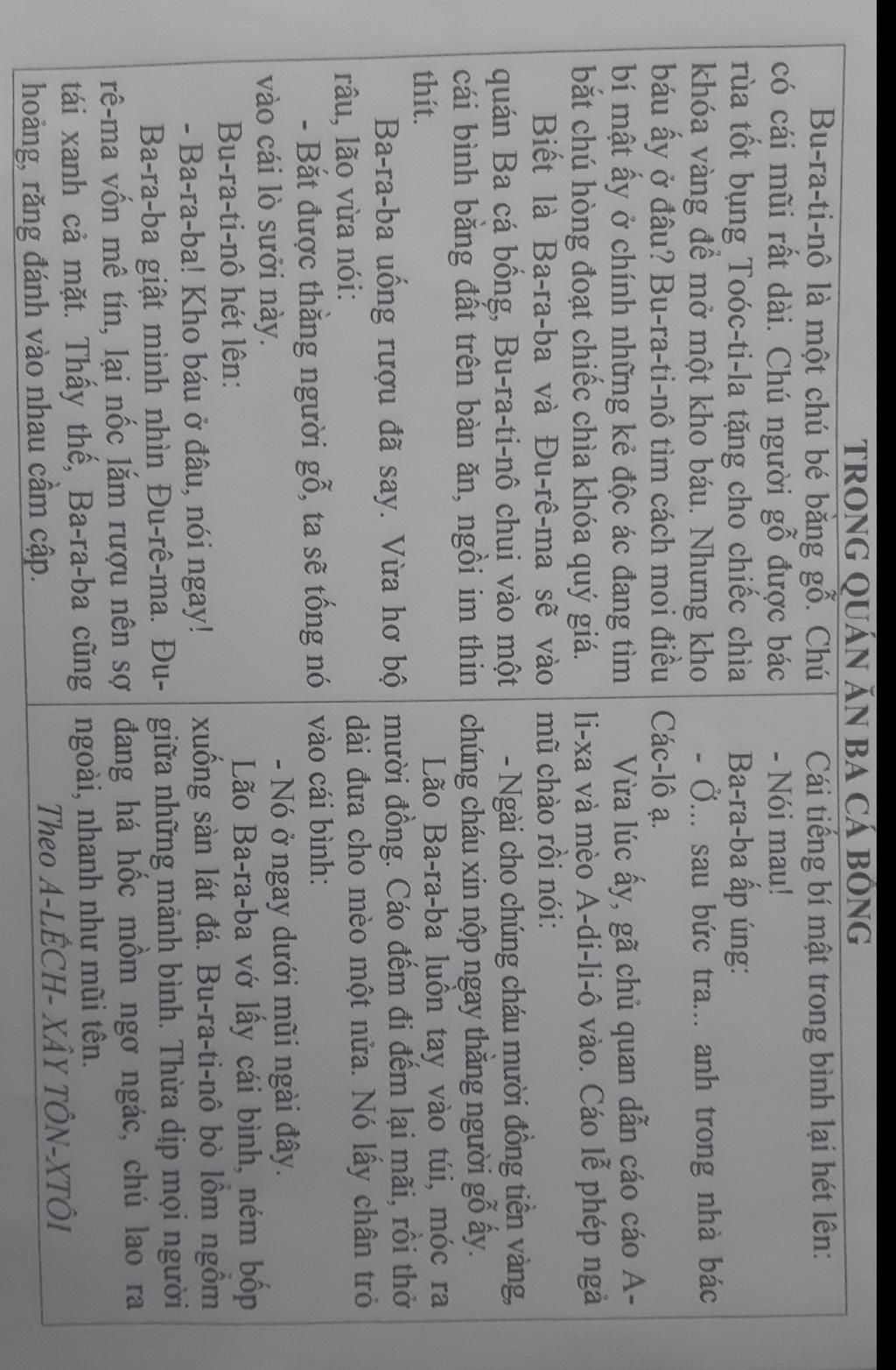 Chú bé người gỗ Bu-ra-ti-nô thông minh đã biết dùng mưu moi được bí mật về chiếc chìa khóa vàng ở những kẻ gian ác đang tìm cách bắt chú.