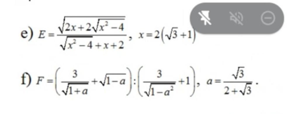 E = \dfrac{{\sqrt {2x + 2\sqrt {{x^2} - 4} } }}{{\sqrt {{x^2} - 4} + x + 2}}\\